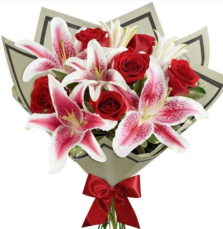 Buque Classic Rosas Vermelhas Com lírio cor de rosa
