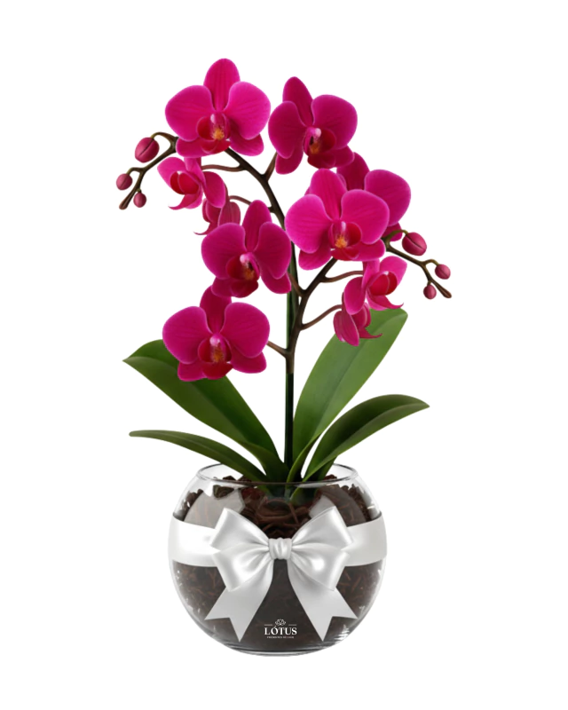 Orquídea no Aquário de Vidro Roxo